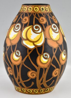 Vaso Art Deco In Ceramica Con Fiori Di Charles Catteau Per Boch Freres In Vendita Su Pamono